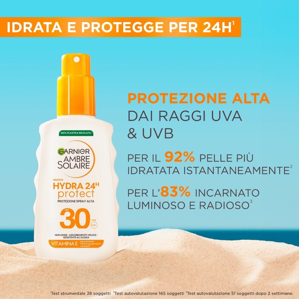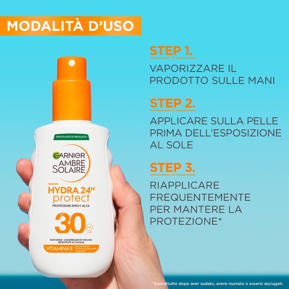 Lo spray con la più alta protezione UV, ora arricchito con Vitamina E per prevenire l'invecchiamento cutaneo indotto dal sole e idratare per 24 ore. SPF 30. Protegge contro i raggi UVB e UVA. Non grasso. Assorbimento rapido. Resistente all'acqua.