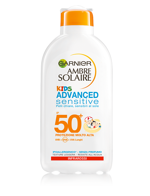 Il Latte Protettivo Advanced Sensitive Kids IP 50+ offre una protezione UVA e UVB fotostabile ad ampio spettro e aiuta a prevenire il fotoinvecchiamento causato dai raggi infrarossi.