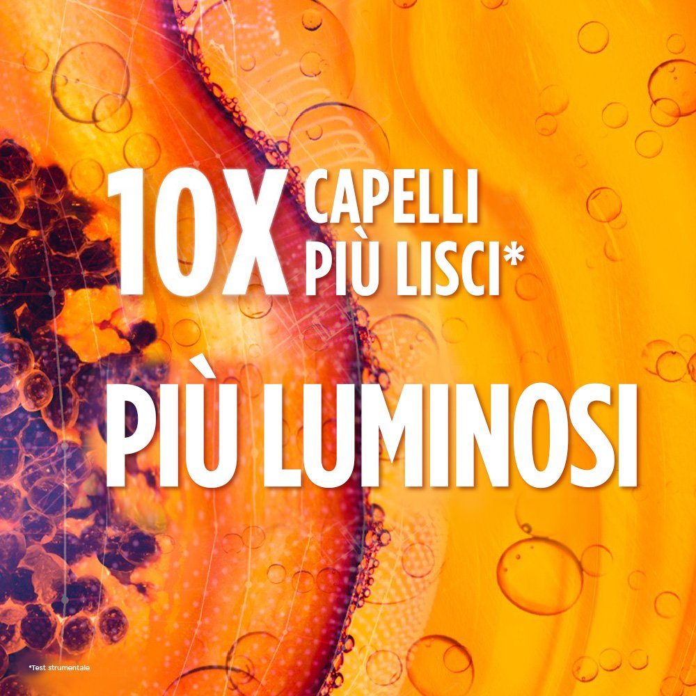 Balsamo liquido con tecnologia lamellare e con estratto di papaya, ideale per capelli danneggiati per un trattamento efficace in soli 10 secondi. Per capellli istantaneamente più lisci, morbidi e con il 93% in meno di capelli spezzati*. Formula con il 97% di ingredienti di origine naturale, senza siliconi, nutre e addolcisce i capelli avvolgendoli in una dolce fragranza.