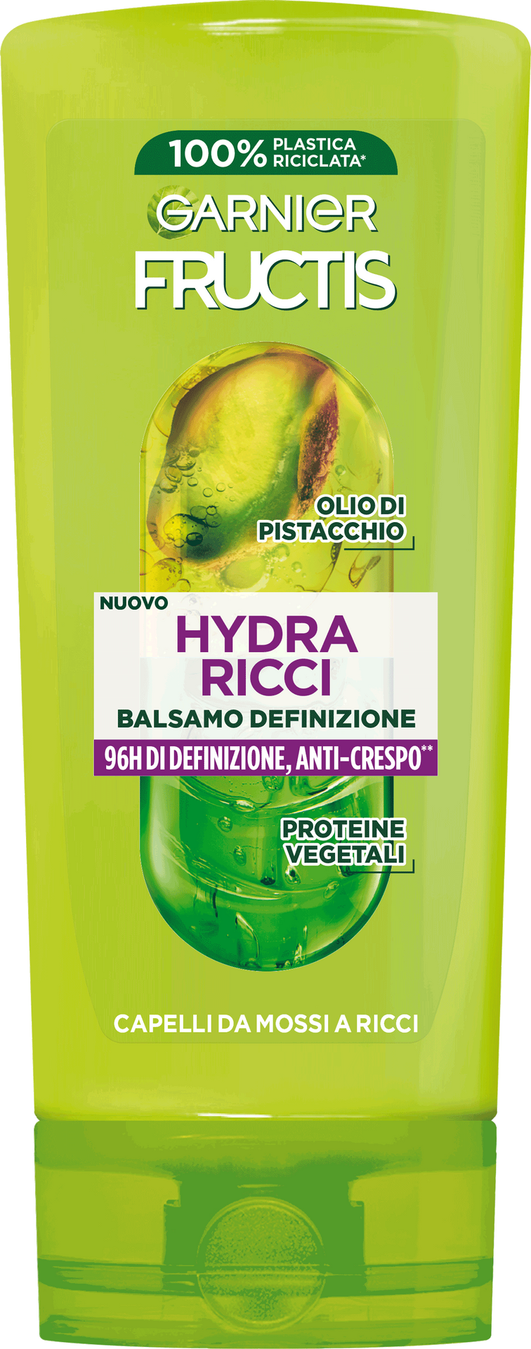 Fructis Hydra Ricci Balsamo definizione, per capelli da mossi a ricci. La nostra formula arricchita con olio di pistacchio che dona luminosità e morbidezza ai ricci senza effetto crespo. La nostra tecnologia è arricchita con proteine vegetali, nutre intensamente i ricci, rendendoli elastici e definiti.