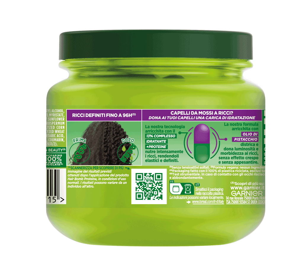 Fructis Hydra Ricci Hair Bomb proteine è ideale per i capelli ricci, e per capelli molto secchi. La nostra formula arricchita con olio di pistacchio districa e dona luminosità e morbidezza ai ricci, senza effetto crespo e senza appesantire.