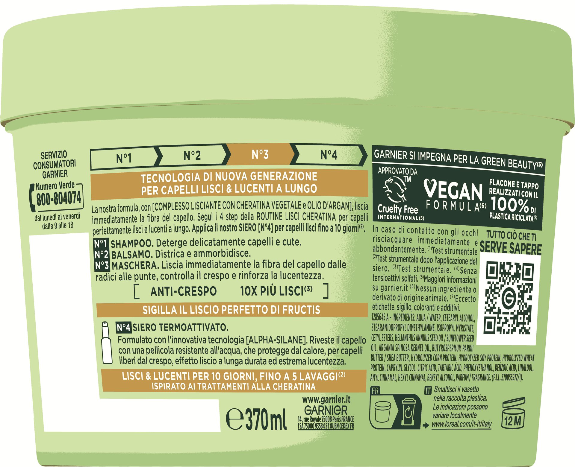 Ispirato ai trattamenti liscianti alla cheratina, la nuova maschera Lisci Cheratina di Fructis è l'ideale per capelli crespi, secchi e spenti. La nostra formula, con COMPLESSO LISCIANTE CON CHERATINA VEGETALE e OLIO D'ARGAN, liscia immediatamente la fibra del capello. Per un effetto anti-crespo e capelli 10 VOLTE PIù LISCI*. Segui i 4 step della ROUTINE LISCI CHERATINA per capelli perfettamente lisci e lucenti a lungo.