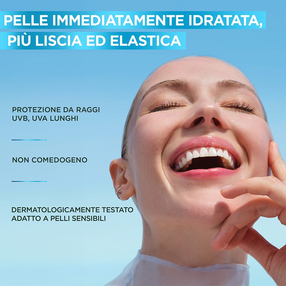 Barriera cutanea protetta, 24 ore di idratazione* e una PROTEZIONE MOLTO ALTA SPF50+ in un fluido quotidiano leggero.