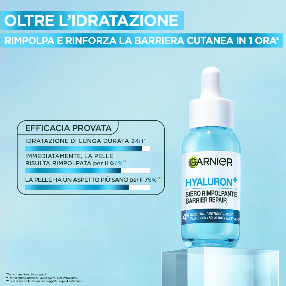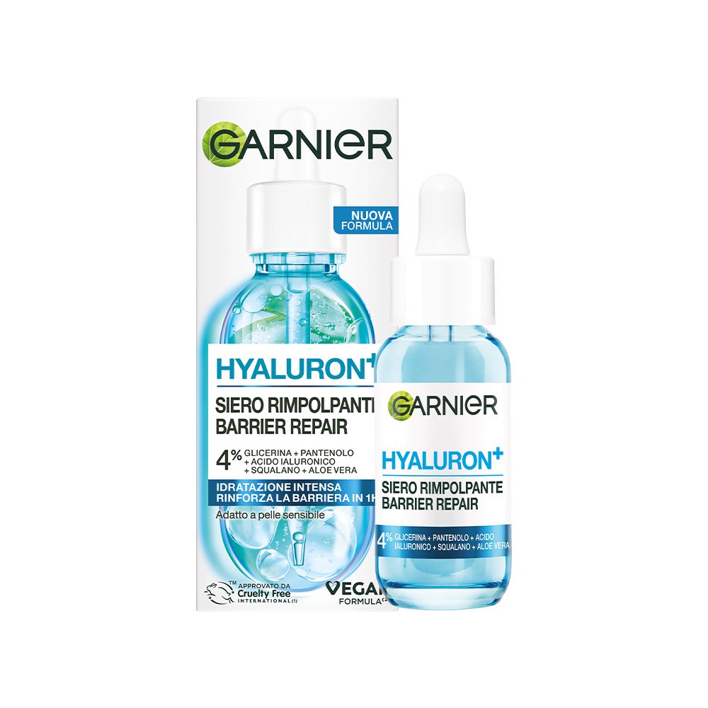 Il nostro primo siero Barrier Repair con 4% Glicerina + Pantenolo + Acido Ialuronico + Squalano + Aloe Vera, ripara rapidamente la barriera cutanea, rimpolpa immediatamente* la pelle, per 24h di idratazione.