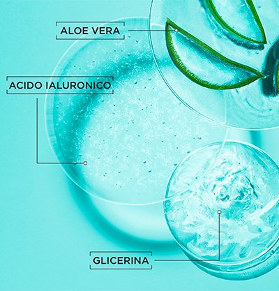 Aloe Vera + Allantoina: Per idratare intensamente e rafforzare la barriera cutanea.