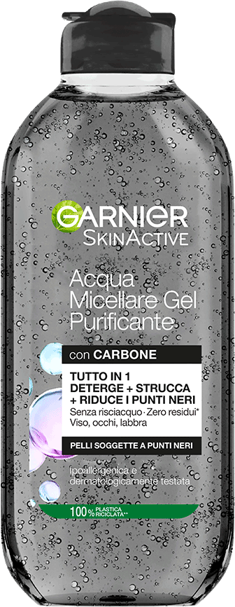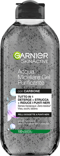 L'Acqua Micellare Gel Purificante con carbone deterge a fondo la pelle e opacizza l'incarnato in un solo gesto. Grazie alle proprietà detox del carbone e dell'acido salicilico riduce i punti neri e le imperfezioni. La formula detergente è adatta a tutti i tipi di pelle, anche quelle sensibili.