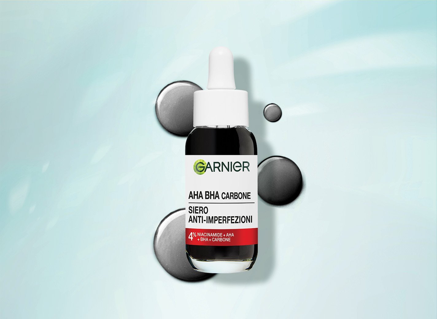 Pelle a tendenza acneica? Prova il nuovo Siero Anti-Imperfezioni AHA BHA con Carbone di Garnier. La sua formula con il 4% di attivi esfolianti aiuta a ridurre punti neri, brufoli e segni post-acneici, lasciando la pelle visibilmente più uniforme e opacizzata. Con AHA, BHA e carbone, aiuta ad affinare la grana della pelle con un’azione delicata: è infatti adatto anche alle pelli sensibili.