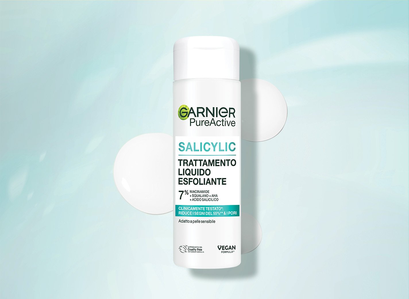 Inserire il Trattamento Liquido Esfoliante Salicylic di Garnier subito dopo la detersione e prima del siero viso è il modo migliore per potenziarne l’efficacia. La sua formula con Niacinamide, Squalano e Acido Salicilico agisce direttamente sulla pelle detersa, aiutando a ridurre la visibilità dei pori e dei segni post-acneici. Applicato in questo momento chiave della routine, prepara la pelle ad assorbire al meglio i trattamenti successivi, per un incarnato più uniforme e levigato giorno dopo giorno.
