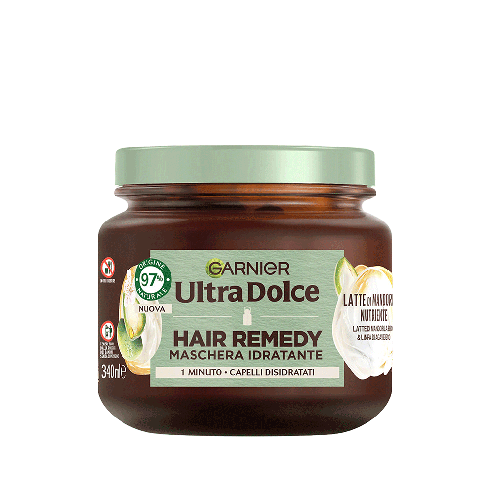 Scopri la nuova maschera 1 minuto* idratante di Ultra Dolce Latte di Mandorla. Il latte di Mandorla Bio nutriente e la Linfa di Agave Bio rivitalizzante sono uniti in un rimedio delicato per una intensa idratazione e morbidezza, che non appesantisce i capelli. Un vero momento sensoriale per te: applica generosamente il nostro rimedio sui capelli bagnati, aspetta 1 minuto e risciacuqa. Grazie alla nuova formula già dal primo minuto di applicazione i tuoi capelli appaiono 3 volte più idratati**. Senza siliconi, coloranti artificiali ed ingredienti o derivati di origine animale.