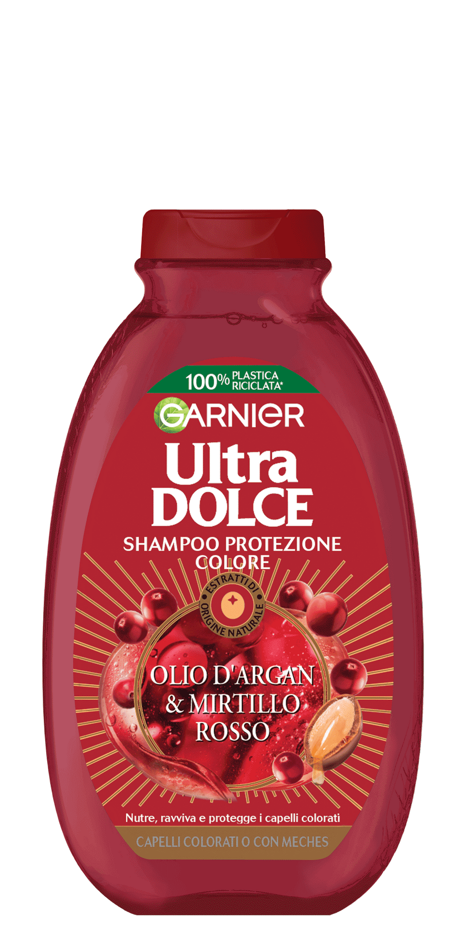 Lo shampoo Ultra Dolce all’Olio di Argan e Mirtillo Rosso è una vera ricetta di nutrimento e protezione per i capelli trattati o colorati.