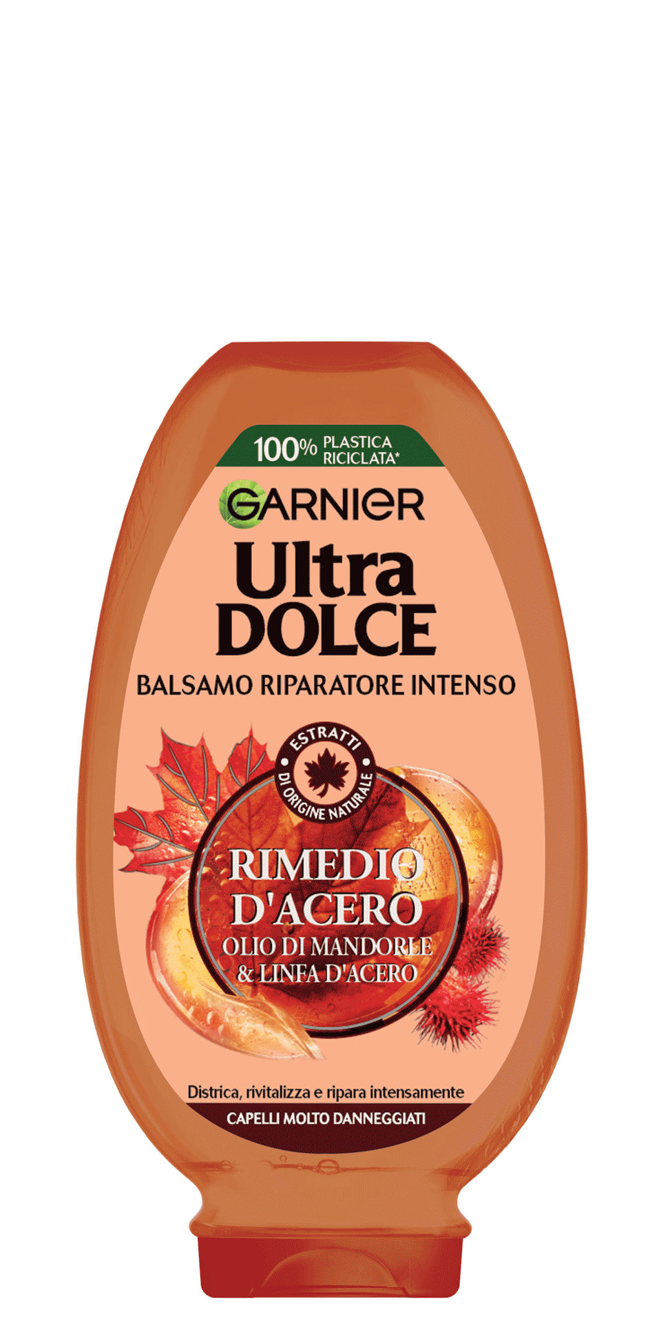 La gamma Rimedio d’Acero di Garnier Ultra Dolce è utilizzando: •L’Olio di Mandorle, ingrediente riconosciuto per le sue proprietà benefiche, importato in età antica dall’Asia ed oggi apprezzato per la sua virtù ammorbidente e nutriente. •La linfa d’Acero, autentico rimedio naturale conosciuto per il suo potere riparatore
