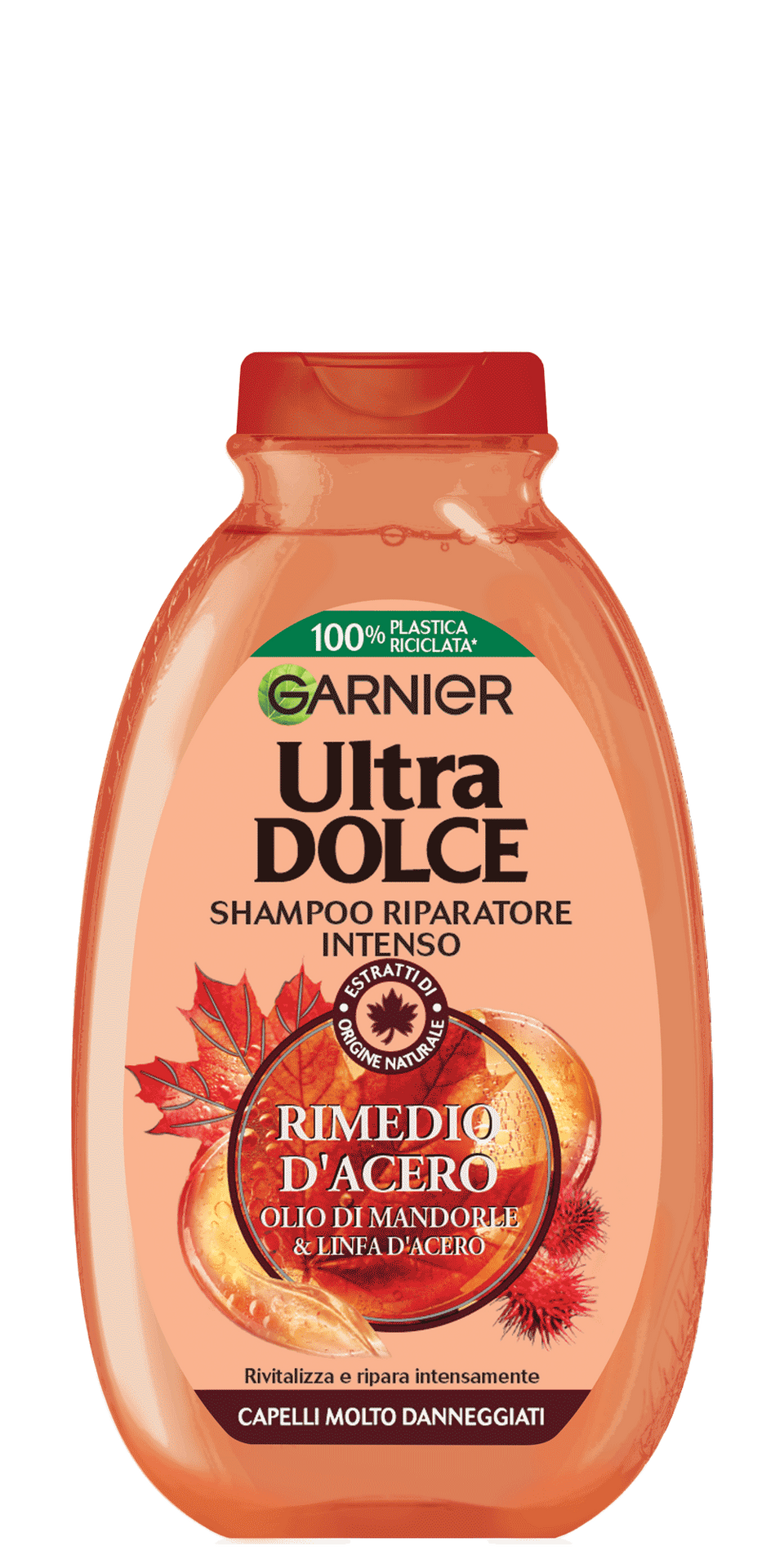 La gamma Rimedio d’Acero di Garnier Ultra Dolce è utilizzando: •L’Olio di Mandorle, un ingrediente riconosciuto per le sue proprietà benefiche, importato in età antica dall’Asia ed oggi apprezzato per la sua virtù ammorbidente e nutriente. •La linfa d’Acero, autentico rimedio naturale conosciuto per il suo potere riparatore