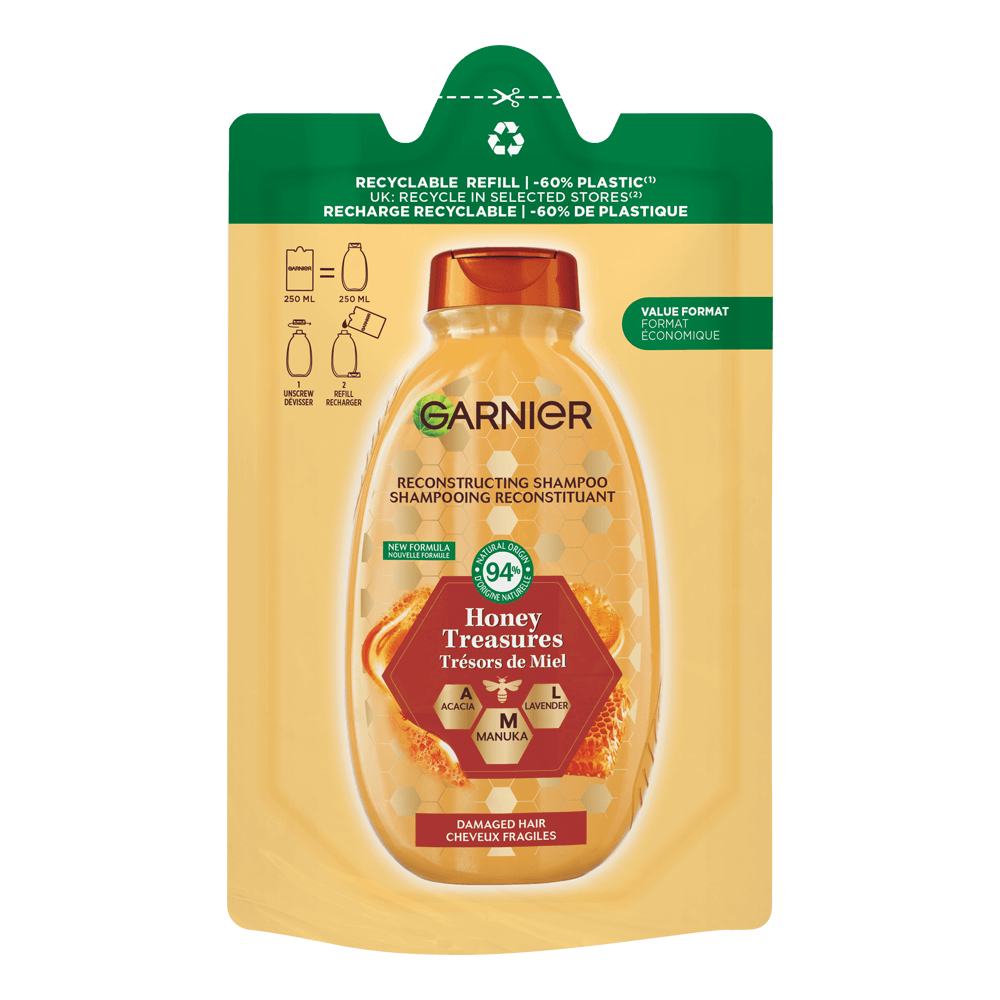 Garnier Ultra Tesori di Miele, Eco-Ricarica Shampoo Riparatore, Capelli Secchi Deboli e Danneggiati